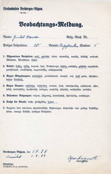 Jedes Mal musste sie das Prozedere bei der Aufnahme in ein anderes Gefängnis wie Erfassen und Abnahme ihrer Sachen und Geldes, Erfassen der Personalien, Befund ihrer körperlichen Verfassung, Körpergewicht und -größe, Verfassen ihres Lebenslaufes u.s.w. über sich ergehen lassen.