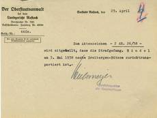 Am 26.02.1938 wurde Martha Hindel durch das Schleswig-Holsteinische Sondergericht Kiel in Lübeck zu einem Jahr und sechs Monaten Haft verurteilt. Das Ende ihrer Haft sollte der 28.05.1939 sein.