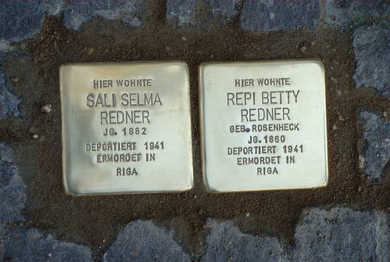 Am 6. Dezember 1941 wurden die beiden Frauen nach Riga deportiert, Repi Betty Redner war 81 Jahre alt, ihre Tochter Sali Selma 59 Jahre. Es ist nicht bekannt, wie sie ihr Leben verloren, doch ist anzunehmen, dass sie zu den Opfern der Massenerschießungen im Februar oder März 1942 im Bikerniekiwald gehören, wenn sie nicht bereits vorher durch Hunger und Kälte im Lager Jungfernhof umkamen.