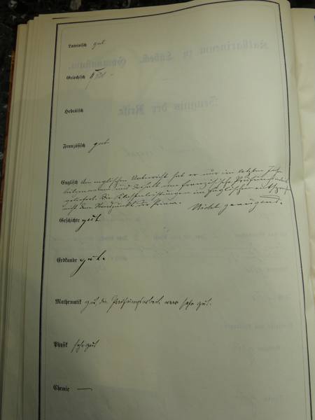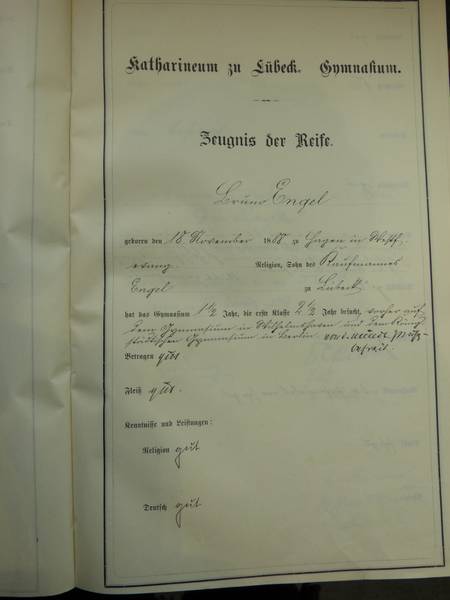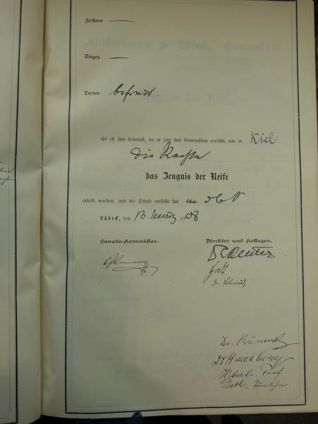 Reifezeugnis Seite 1,Archiv der Hansestadt Lübeck,Schulen, Katharineum
