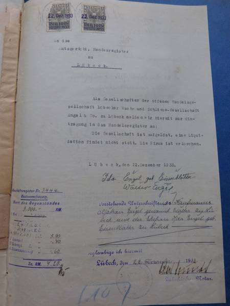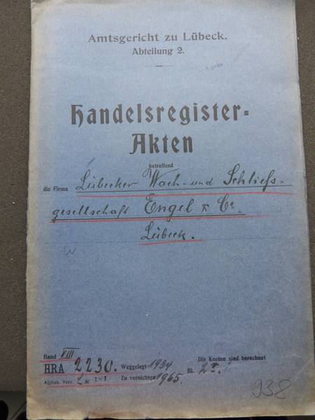 Titel der Akte, Archiv der Hansestadt Lübeck, Amtsgericht Lübeck, Abt. 2, HRA 2230